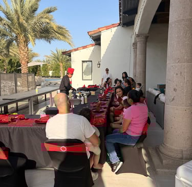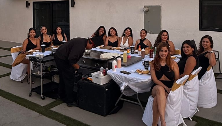 We specialize in bringing the full on-site catering experience to you. From live cooking and customizable menus to complete table and chair setups in your chosen theme—at no extra cost—we take care of the details so you can focus on your guests. Whether you use our setup or your own, we provide all the serving essentials; the only thing you’ll need to bring are beverages and cups. With flexible menu options and allergy-friendly choices, we make every event seamless, stress-free, and memorable